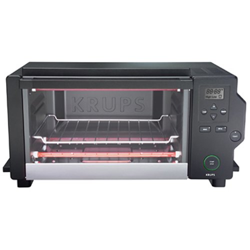 Krups Digital 6 Slice Toaster Oven (Fbc2). Patented quartz cycling technology alternates 1600 watts of power to each set of heating elements Convection baking function circulates heated air around food faster - more even cooking Two sets of 3 quartz heating elements heat food 30% faster Highly polished stainless steel reflective crumb tray Illuminated LCD control panel with easy to use controls and high quality soft-touch buttons Precise temperature control Defrost function Digital clock display Non-stick interior surface Easy to clean Includes non-stick bake pan, broil tray and thermal resistant tongs for safe removal of hot pans or food 10-3/8"Hx14.75"Wx20.5"L Black